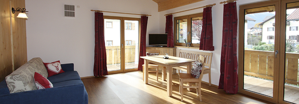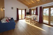 Im Appartement 1 finden Sie ein Schlafzimmer mit Doppelbett, Bad mit Dusche und WC sowie einen großzügigen Wohnraum mit Sofa, Ohrensessel, Sitzgruppe, TV, Kochgelegenheit, Kühlschrank, Mikrowelle sowie eine Nespresso-Maschine vor. Wifi ist kostenlos nutzbar. Sie haben hier einen umlaufenden Balkon mit einem wunderbaren Bergblick.